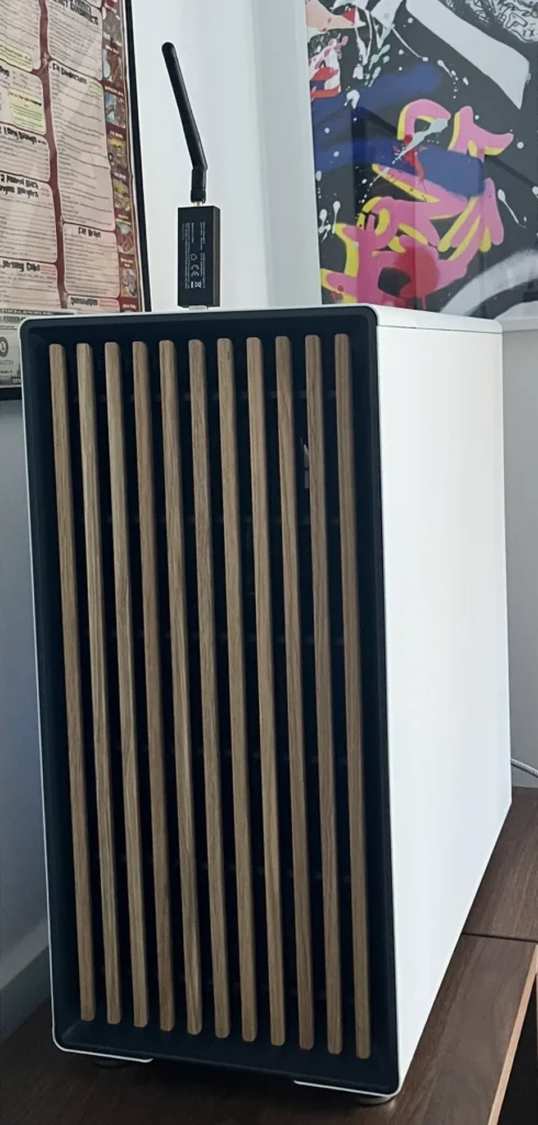 This setup was originally intended to be a gaming-only PC, so I chose a sleek and clean-looking case: the Fractal Design North XL. While it’s an aesthetically pleasing choice, the one downside for use as a server is its limited storage capacity.